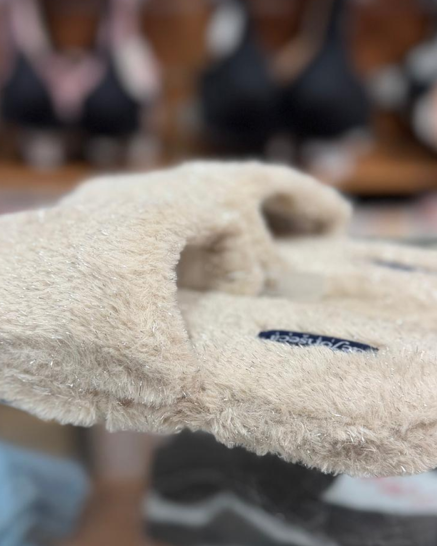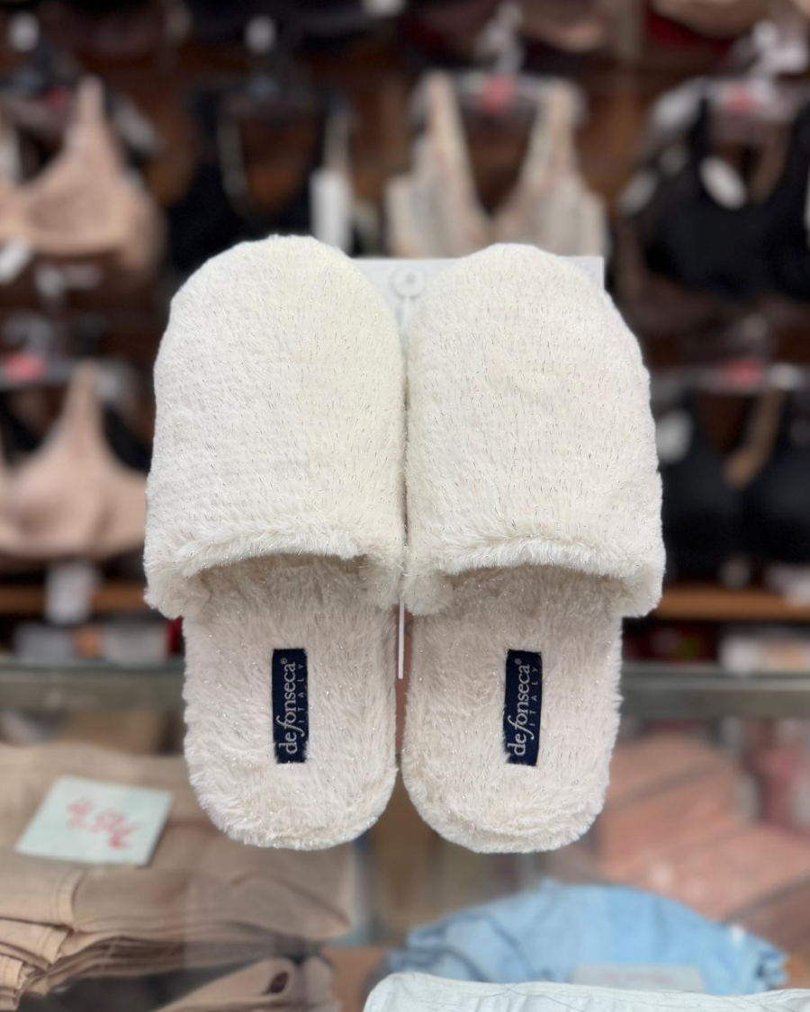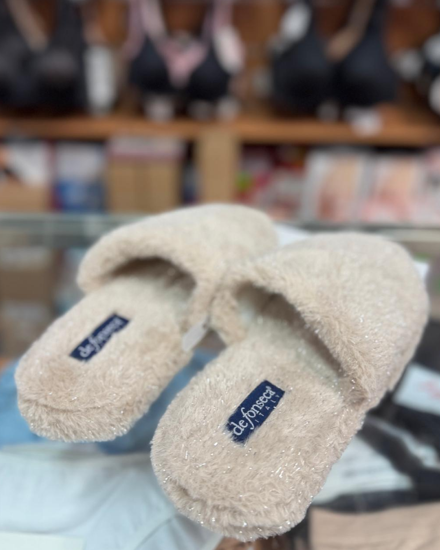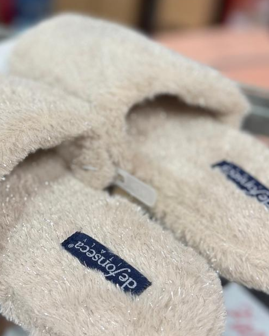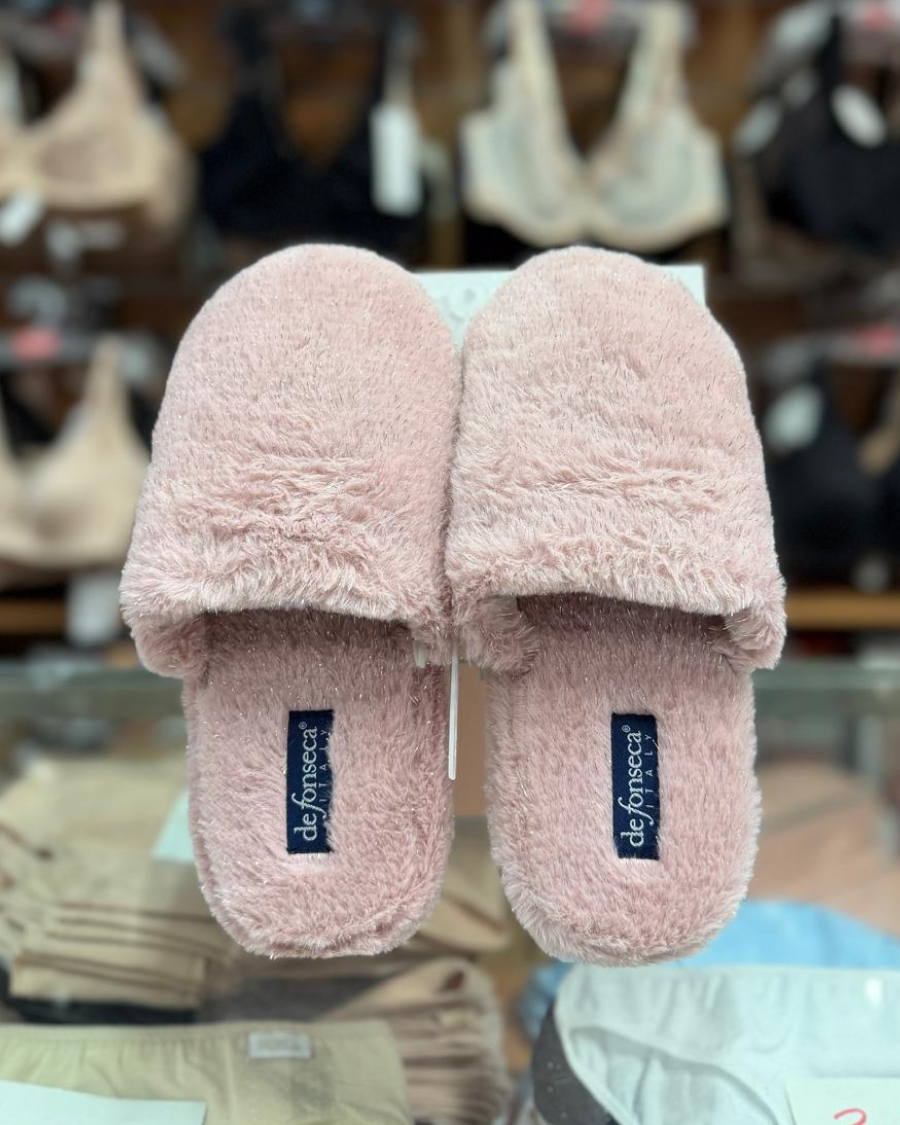 Chinelo de quarto com pelo, com palmilha almofadada e sola em borracha antiderrapante. Chinelos De Fonseca, lavável à maquina a 30º sem centrifugação.